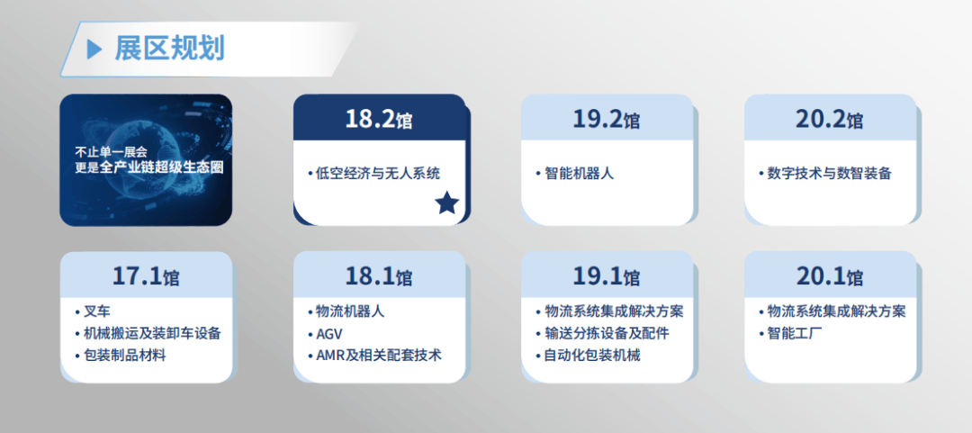 无人机飞翔器零件(消费无人机、工业无人机、特种无人机)、低空配备取配件(航空器动力系统、系统)、低空根本设备(通用机场、起降点)、低空使用取办事(物流运输、应急救援、农业植保)等“聪慧物流配备×数智配备取人工智能×智能机械人×低空经济取无人系统”全链整合展区内,为行业带来一场科技取立异交融的盛宴。展会估计吸引超 1000 家企业参展、逾 7 万名专业不雅众参加,此中包罗低空飞翔器研发企业、根本设备扶植商、系统处理方案供给商及物流、安防、应急等使用范畴采购商。•制制业:3C、电子、大型食物厂、酒厂/饮料厂、生物医药(制药厂、大型连锁药店)、汽车(整车/汽车零部件/汽车用品)、家电厂、烟草、服饰厂、日化、新能源、电池厂、储能、半导体、光伏、风电、电力、石油化工、建材、照明、家具、制纸、文具、玩具、计较机/通信、机械设备、仪器仪表、橡塑等终端企业•物流取供应链:大型电商、邮政/快递、物流供应链/物流仓储办事、物流园区智能配备取工业制制(零件取成套智能配备、工业从动化)、人工智能手艺取使用(AIGC、数据大模子、算力底座、物联网取数字孪生)、数字新基建(数据核心设备、工业互联网平台)等•医疗/康养、公共事业取机构:病院、康养、市政、教育、交通、地铁、应急、林业、矿产、海洋、海关、等物流系统集成取处理方案、数智工场规划及方案、内部物流系统取软件、仓储手艺取车间设备、AGV/AMR及物流机械人相关配套手艺、输送分拣设备及配件、起沉设备及配件、从动化包拆机械及耗材、包拆成品取材料等